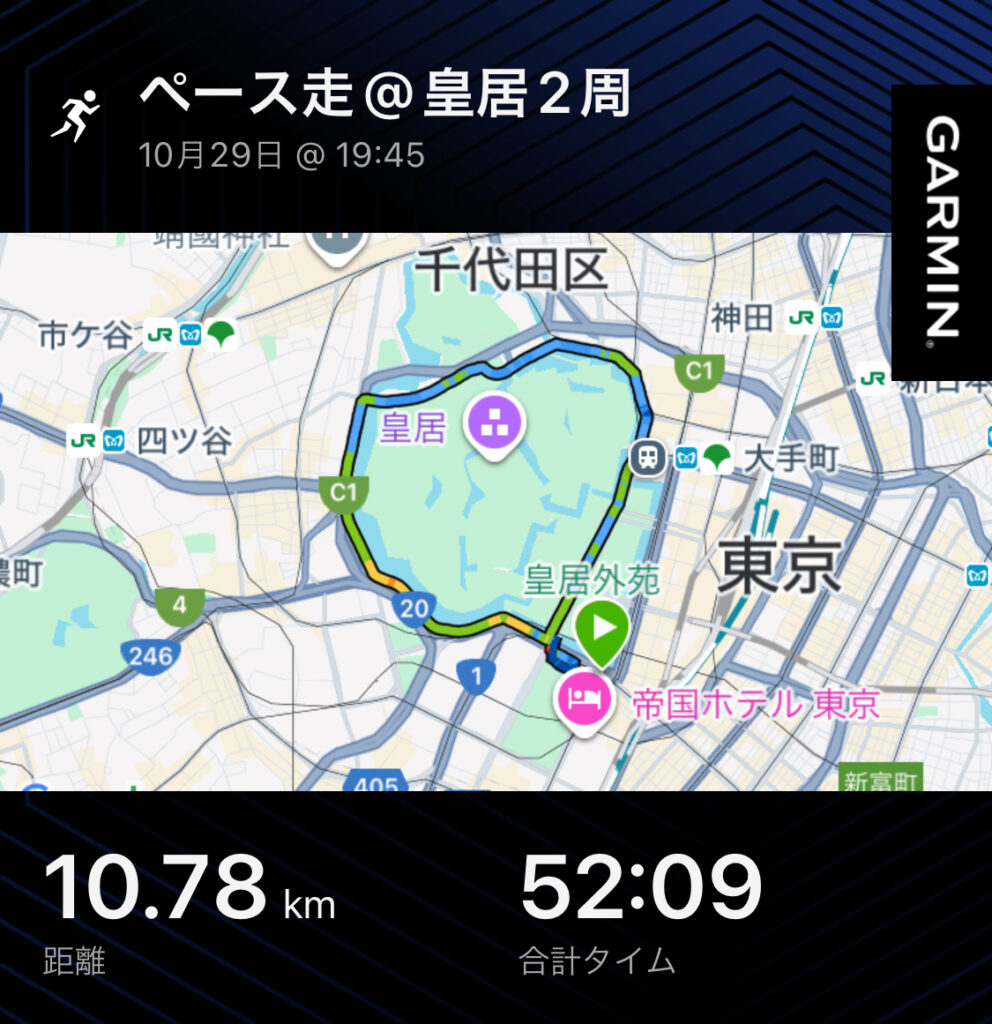 水曜 🏃♂️ペース走10km@皇居