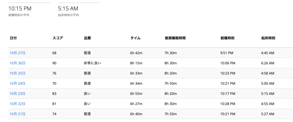 Garmin記録の就寝時間は、床についてから20〜30分後くらい遅い感覚です。