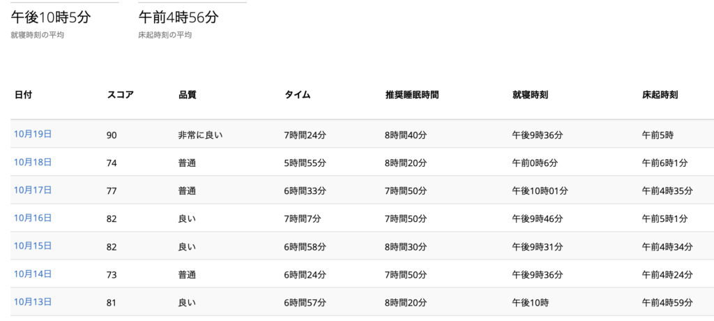 だいたい9時半には寝てますが、Garminの就寝時間は寝た感覚の30分後くらい遅いです。