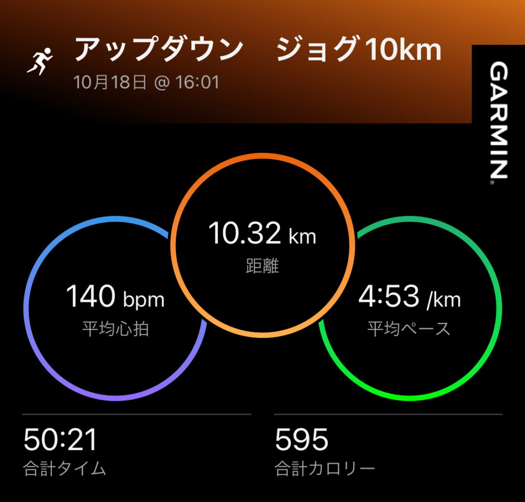 運動会での50m走か綱引きか分からないけど、筋肉痛がとれずにかなり軽めのジョグ🏃